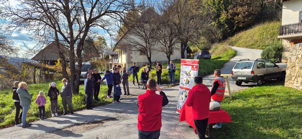 V soboto 18.10.2025 ob 15. uri je ekipa Rdečega križa Laško pripravila predstavitev AED aparata na križišču pred domačijo Deželak Franca na Ojstrem. Že pred dnevi nam je uspelo pri svetilki na omenjenem križišču montirati omarico, v katerem je nameščen aparat AED. Kako in zakaj je omenjen aparat pomemben je škoda izgubljati besed. Še posebej je pomemben zaradi oddaljenosti vasi od mesta. Zbralo se je precej vaščank in vaščanov z Ojstrega in z zanimanjem so prisluhnili razlagi strokovnjakov. Še posebej je pohvalno, da si je predstavitev ogledal tudi župan Marko Šantej, ki si je na ta način ogledal ta del naše krajevne skupnosti. Vsem skupaj še posebej pa domačim s kmetije Deželak se zahvaljujemo za pripravo prostora in kasnejšo pogostitev.